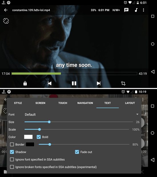 MX Player is probably the most popular name among Video Players on the Android Platform. And that popularity is for a reason — MX Player supports almost all of the popular video formats out there. Not just that, it also has a balance of an easy-to-use interface and some advanced features as well. And well, subtitle playback is one such feature that comes with MX Player. MX Player can play any subtitle file by the same name as the video file and placed in the same folder. Otherwise, you can always tap the menu option in the Video Playback screen -> Subtitles -> Open. Here, you will also see the option to Synchronize the video and Subtitle, or open a dedicated Panel for subtitles near the bottom of the Playback Screen. You will also see a settings option which will take you to the preferences for tweaking other Settings related to Subtitles display (see the second screenshot above).