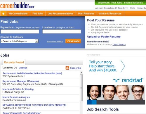 Careerbuilder.com is another job website that helps you to search for jobs online in US. The website is has a classy interface and you can search for jobs easily with this website. The website aims to build a career prospects for you and you can search jobs by keywords or by location. You can also search jobs by category.