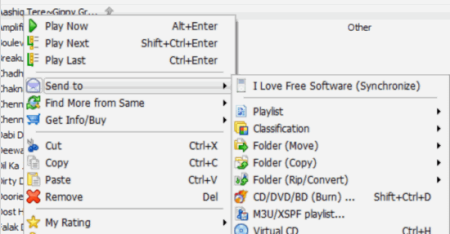 First, I will explain the process to transfer songs from iPhone, iPad to your PC. To do this, click on your iOS device name displayed on the left navigation pane. Select the Music section under it. Now, select the songs which you want to transfer and right-click to reveal the right-click context menu. From this context menu, click on Send To, and then Folder (Copy). Now, provide the destination folder and you are done.