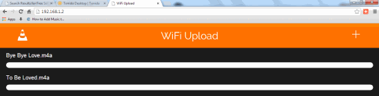 To start the transfer process, install the VLC for iOS app and launch it. Now, tap on the VLC icon at top left to reveal the left sidebar. From here, turn on the WiFi Upload option by tapping on it. The app will show a URL like http://192.168.1.2. Open this URL in your PC’s browser to get VLC WiFi Upload window. Now to add media files to your iPhone, iPad or iPod, simply drag and drop them on the WiFi Upload screen. You can also click on + icon at top right to get the dialog box and look for the song location. You can check the transferred media file on your iPhone immediately.