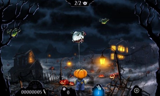 Shoot The Zombirds is a free Android shooting game to play with Zombirds, undead birds, and Pumpkin boy. You are the Pumpkin boy in the game. Now you have to protect Pumpkins from the evil birds which are against pumpkins. You have to shoot zombies and undead birds to protect Pumpkins from the evil birds and zombies. There are many zombies and birds to kill. kill them all and win the game. You have been provided with limited arrows which you have to use carefully without wasting. You can easily increase number of arrows by killing more and more zombies and undead birds. I don’t know about game levels, as I was unable to clear even the first stage of the game. You can play the game, crack the level, and then check out for more levels. Make your scores beat the top players of the game by checking up the scores from the game scoreboard.