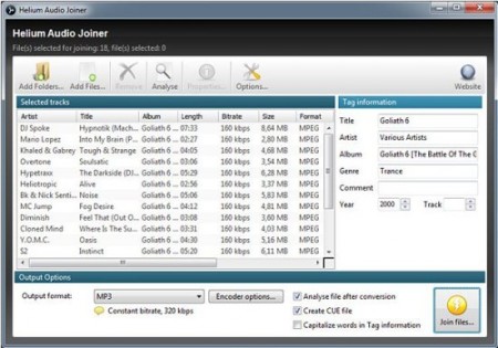 Helium Audio Joiner is the first free software in this list that lets you join multiple audio files. You can join files of different formats and merge them into one. The interface of the software lists all the files that you upload and wish to merge. Another good feature of this software is that you can reorder the uploaded files. You can arrange the files one by one in your desired sequence. At the end of every file, a small gap can be inserted that signifies the end of a file. The software is very small in size and also supports multiple languages.