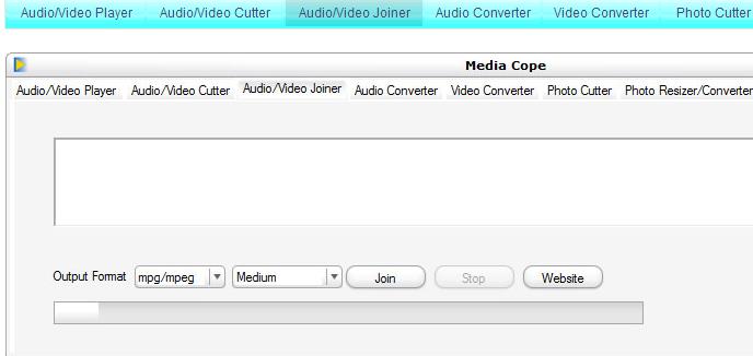 Media Cope is the fifth and final free audio joiner for Windows that I have included in this list. It has a very pretty looking interface and comes with a rich list of features. Not only can you join audio files, but also join video files, convert audio files, and much more. The add button on the interface lets you add as many audio files as you want. All the uploaded files are listed on the interface. Before you join the uploaded files, you can select the output files, size, and then hit the join button. The software supports different file formats like MPG, MP4, MP3, and more.