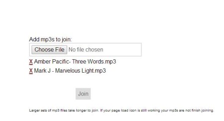 The next audio joiner in this list is Online MP3 Joiner. This is also an online audio joiner and is a straightforward platform to merge multiple audio files. You can simply upload the files that you wish to merge together and hit the join button. The time that the website will take to join files depends on the size of your files, and your internet speed (I had to wait for a couple of minutes while testing). Once the files are merged, the output file is automatically downloaded on your system. The simplicity of this website does rob you of some features, but it performs the mentioned task efficiently. It is a good option if you are looking for something simple and straightforward.