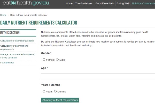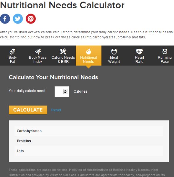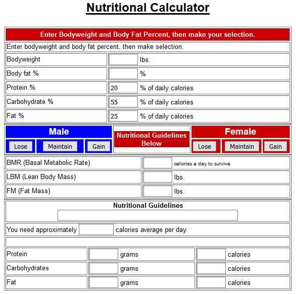 Let’s look at some nutrition calculators we found online.
