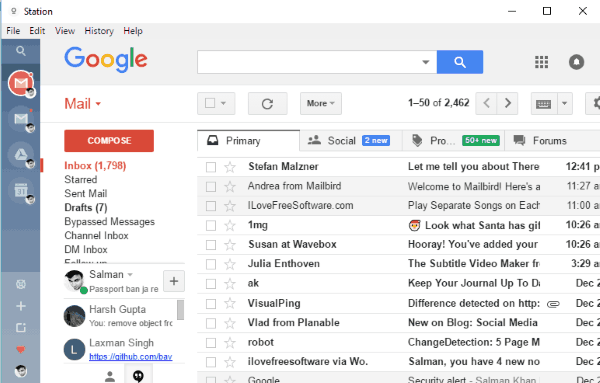 Station is another completely free Gmail desktop client which you can install on your PC and your Gmail accounts. You can easily use it to access your inbox as you normally do on the web version of Gmail. Station also allows you to connect unlimited Gmail accounts and even use them simultaneously. Each account can be accessed in a separate window so you don’t need to switch between your Gmail accounts. This one also displays the exact same interface of the Gmail web version making it easier for you to use. There are many additional features available like the focus mode to disable notifications, zoom, etc.