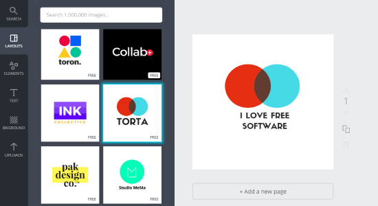 The Free Logo Makers (homepage) is also a free and simple online logo maker which can help you easily create logos. This one also offers hundreds of predefined logo designs which you can select and edit to make your own logo. To get started, you can simply visit the homepage of this logo maker and select any of the predefined logo designs. After that, you can completely customize the design like change color of the logo, edit logo text, move logo and text, etc. On the left, you will see a toolbar using which you can add various shapes like circle, rectangle, ellipse, and more to your logo design.