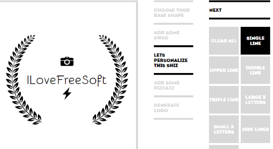 Hipster Logo Generator is also a useful online logo maker using which you can create simple and stylish logos. To create a logo using this logo maker, the first thing you would need to do is choose any of the base shapes. Currently, it offers a few base shapes for you to use. In addition to that, it also comes with more than 25 predefined icons which you can select and add to your logo design. After that, you can proceed and add your logo text by selecting any of the predefined positions for the text like Single Line, Double Line, Large X Letters, Side Line, etc.