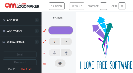 It also comes with the options to search and add dozens of predefined icons and shapes to your logo design. Apart from that, you can also manually insert new text, change the size of the text, change font, alignment, etc. When you’re all set, you can download the logo as PNG file with a resolution of 200×200 pixels in the free version. It will actually send the logo to your registered email id from where you can download it.
