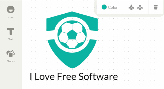 Ucraft Logo Maker (homepage) is another free online logo maker which can be used to create great logos. If offers more than 50 predefined icons which you can use to create your logo. After adding an icon, you can change the color of the icon to any color you want. You can also add different shapes to your logo design. Apart from that, you can insert custom text, change text font, size, color, and apply text formatting like bold, italic, etc.