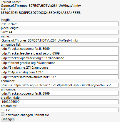 BitTorrent .torrent Files Editor is another free website that you can try to edit torrent files online. Just like the website above, it takes a torrent file from you and place its contents on its interface. You can edit the torrent information like piece length, name, announce list, trackers, comments, creation date, creator name and some others. You can easily edit this information and download the edited torrent file on your PC. This is a simple website and only focuses on editing part. Unlike the website above, it doesn’t validate the trackers or offer some other features.