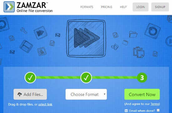 Zamzar is another MOV to GIF file converter. Here, you can convert files online just in three simple steps. Firstly, you have to upload the MOV file in the converter. For that, you can drag and drop the input file, browse from your computer or directly enter the URL of MOV file. Using this converter, you can convert files in bulk.