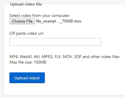 The converter seems quite simple. You can upload the video or MOV file in the converter. For that, you can click on Choose File in order to browse the input file from your computer. You can upload the MOV file under 10 MB file size.