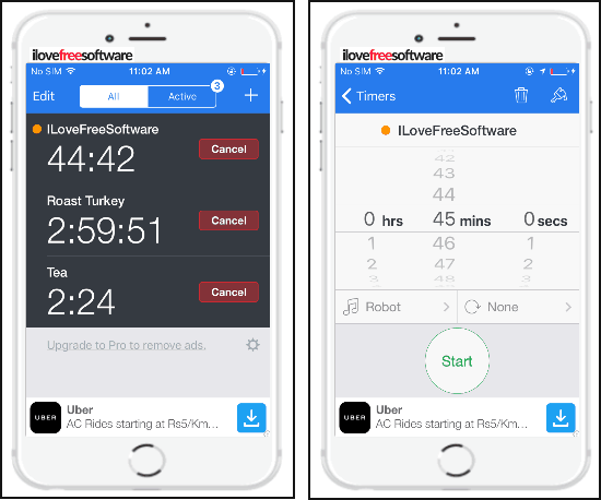Well, as compared to similar multi timer Android apps these iPhone apps don’t offer a lot timer options like longer duration of timers (up to 999 hours on Android), add notes to the timer, log timer details, and control all timers at once. You will have to pause, reset, etc each timer individually on these iPhone apps. These iPhone multi timer apps are pretty simple in which you can add multiple timers (limited number of timers in some apps) and run all of them at once. These multiple timers remain active even if you close the apps as they run continuously in the background.