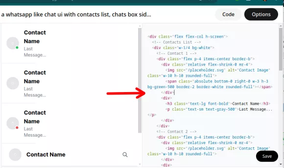 - Again, wait for it to fully generate the component. If you like it, then you can switch to the code tab, and you will see all the code with all the CSS classes. At this point, you can just copy the code and use it anywhere you like.