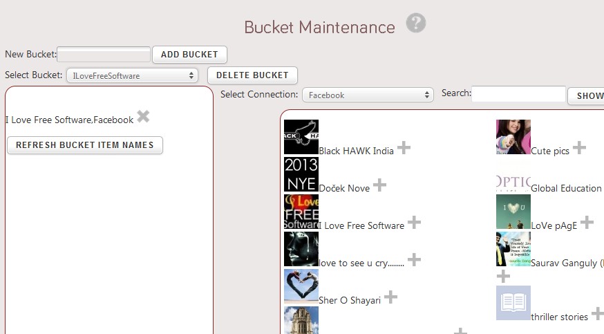 Open up the Maintenance tab. This is where you can add Buckets, meaning feed groups, and then add to the created Buckets all the feeds that you are interested in tracking. Updates from contacts that you follow or are a friend of, groups that you’re a member of can be received by opening up the Buckets that you’ve setup in the Feed tab, see the first image above.