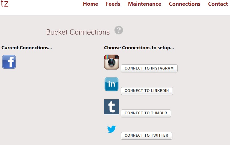 From the Choose Connections to setup column, select which social networks you would like to connect and combine in your mybucketz account. Once that the connections are created, they are gonna be added to the left column.