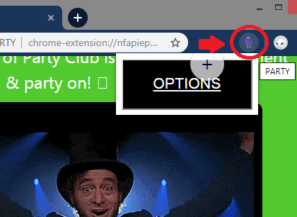 You can simply install the PARTY extension from here. After that, you don’t really have to set up anything. Its icon will appear in the Chrome toolbar and you can use the “Options” right click menu entry to read more about this extension. And it not only works on Facebook but works everywhere including Gmail, Twitter, Reddit, and many other social media websites.