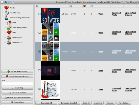 Photo and Video Downloader for Instagram is an advanced software and has many interesting features. The most important and unique feature is that you can add multiple Instagram accounts and access those accounts using the left sidebar. After that, you can bulk download videos and photos.