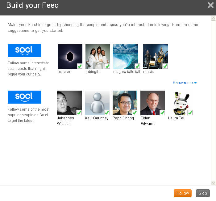 Some basic groups and usernames which were pre-selected on the count of the information from your account are offered for addition to your So.cl account. That way, you can receive updates in your account right away.