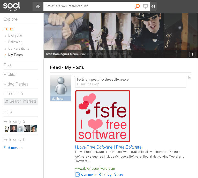 So.cl is kind of a mix between Twitter, Facebook and search engines. You might have noticed on the left side of the screen on the image above that you have Feed and Followers listed. Feed is present on Facebook and it’s where what your friends share is listed, and Followers are what Twitter is all about. Here those two things have been joined, and together with Microsoft’s Bing they are what makes So.cl special.