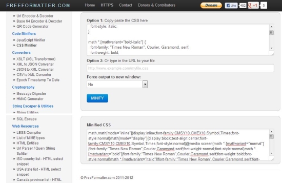 Next is Online CSS Minifier, another free online tool to minify CSS files. It’s a simple and easy to use tool, which compresses and minifies CSS files easily. Online CSS Minifier is based on the popular Microsoft Ajax Minifier and provides various setting options that you can adjust to control the minification of the CSS source code.