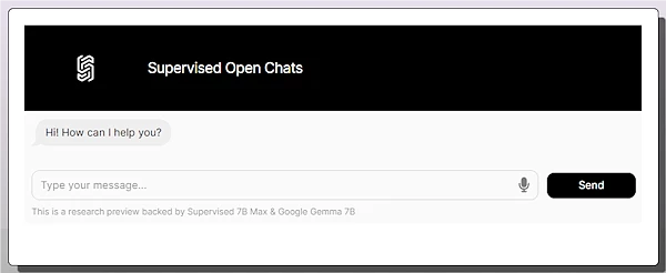 On the Supervised AI website, anyone can test and try the new Gemma AI models. The website provides a simple chat interface where you can interact with the Gemma models and get your queries answered. Alongside the text, the interface also supports voice input. It converts the voice to text and provides answers.