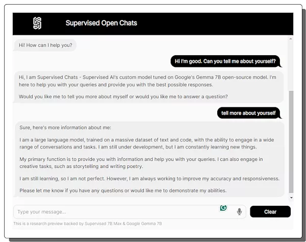 I’ve tested the Gemma AI provided by Supervised AI. The model provides good enough answers to most of my queries. I tried a set of regular queries asking various things, the responses are up to the point with enough details.