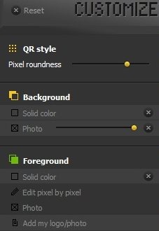 - You can start by providing Pixel roundness for QR code. Use slider on the Right side to increase or decrease roundness.