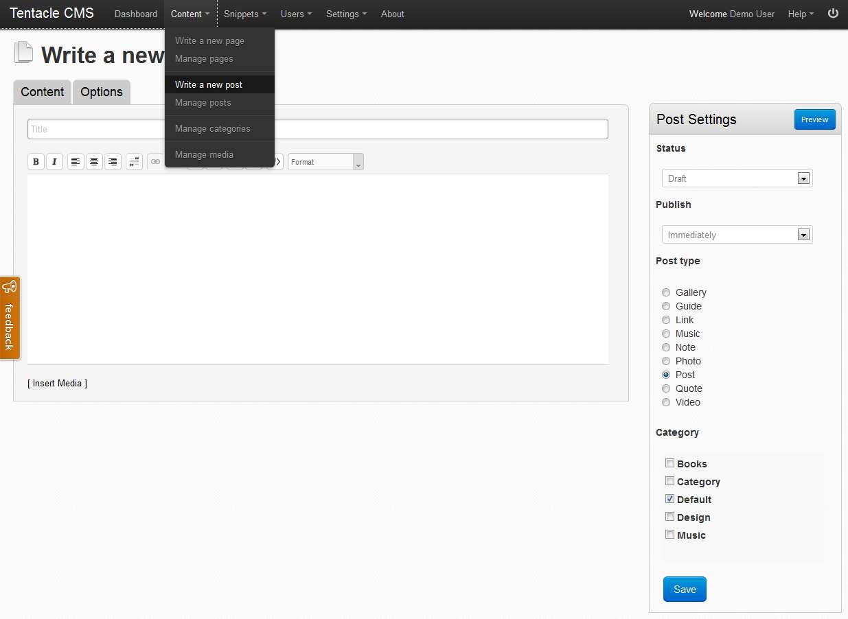 Tentacle CMS adding post