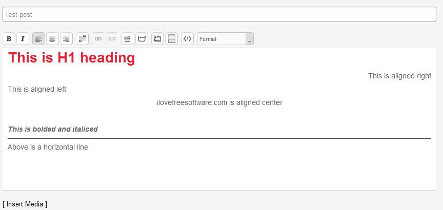 What you see above is pretty much the standard when it comes to graphical web editors, you get all the basics tool which are necessary for the creation of posts like: