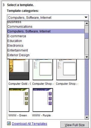 Yahoo! SiteBuilder- select a category and template