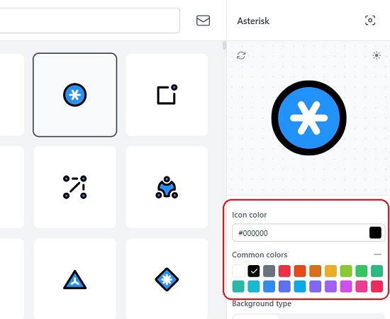 7. Alternatively, to change the Icon Color, click on the corresponding color picker in the panel and choose your favorite color. You can also select any color from the ‘Custom colors’ list.