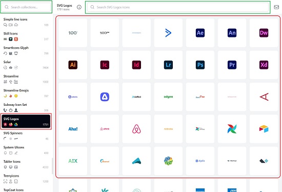 5. You can use the Search fields at the top of the page to search for specific Icon Sets or individual Icons in any collection.