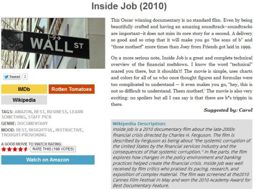A Good Movie To Watch is rather a unique site that I came across. What this website does is lists lesser known movies which got high critical acclaim. Movies which receive good reviews from both users and critics but are not commercially successful find a place in this website. Just because a movie is not a commercial success doesn’t means its a bad movie. There are a lot of factor which figure in making a movie a commercial success like marketing, distribution, etc. So what these lesser known movies did wrong was they didn’t fit the norm of a commercially viable movie. Maybe the director didn’t care about the marketing or distribution, or maybe it was a low budget movie, that in no way defines quality of the movie.