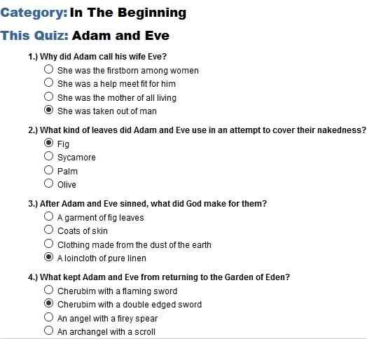 Apart from these quizzes you can also play quizzes by category. Categories like the old testament, the new testament, and whole Bible are available.