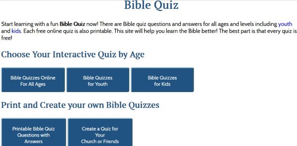 These are the 5 free online Bible quizzes websites. You can check out your Bible knowledge by taking quizzes on any of the websites. In my opinion the most interesting quizzes can be found on the Christianity website. I definitely enjoyed playing those quizzes. You can try out all the websites and see which one you like the best.