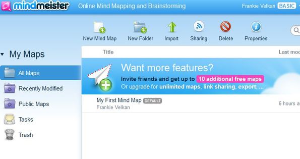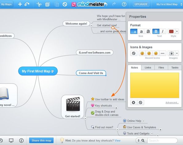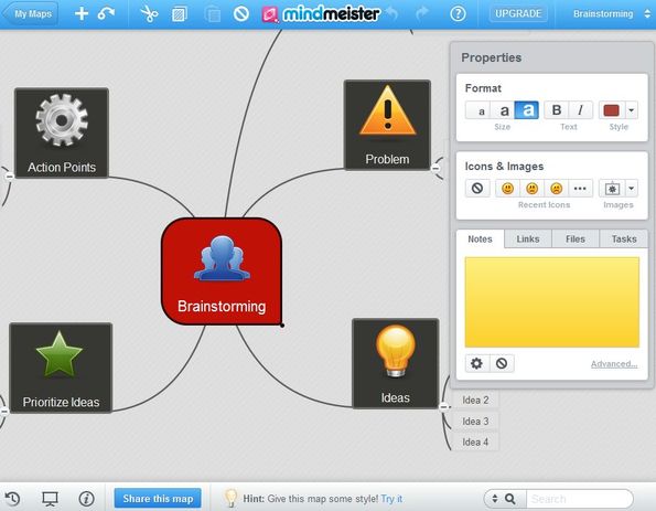 MindMeister is a free online mind mapping software which you can use in order to create and collaborate on mind maps online, inside your web browser. Everything that you need to do is register an account and you can start creating mind maps right away. To develop mind maps you add idea bubbles and then develop them by adding icons, images, text and links. After a mind map is created you can setup a presentation from it, to show the mind map at work or at class.