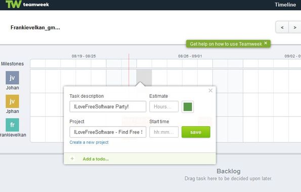TeamWeek is a free online team management software where you can manage projects on a weekly basis for teams of up to 5 members. After registering an account you get a linear calendar view for each of the members of your team where you can easily, via point-and-click, setup their weekly schedule. Each of the members of your team can be assigned to a different task and that way you manage the projects that you’re working on.