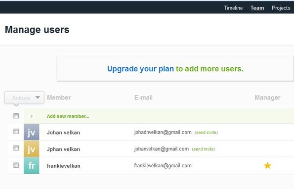 New team members can be added by clicking on the Add new member button, which can be seen just above the list. Up to 5 members can be added, for more you’ will have to upgrade.
