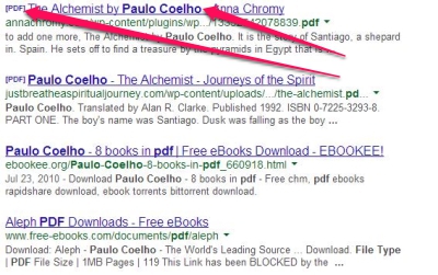 What if you’re looking for an Ebook from an author and you only want Google to search for books in PDF format. You can use the “filetype:” operator to get this done.