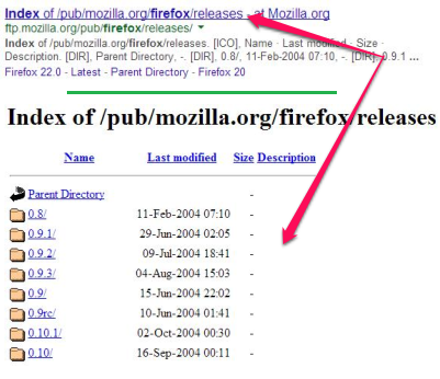 I would like to get the directory listing of all websites with “Firefox”. I would do it like this: