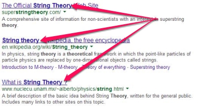 I would like to know about “String theory” and it should appear in the title of the website and not just in the content of the website.