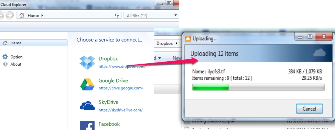 Cloud Explorer is a handy cloud drive explorer software that allows to access files and folders you have stored on your Dropbox, Google Drive, SkyDrive, and in Facebook account. Not only you can view stored content, infact you can download them to PC for offline access. It also lets you upload files or folders to your account on any of these cloud storage services. The most important feature of Cloud Explorer is that you don’t need to download any desktop client for Dropbox, Google Drive, SkyDrive client, or Facebook to access stored contents. It is able to let you view all photos, music files, videos, stored on your cloud storages.