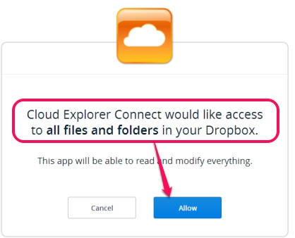 After this, login to your Dropbox account. At the next step, you need to allow Cloud Explorer to access all your Dropbox files and folders, so that it can display those contents on its interface.