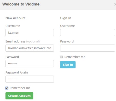 If you need to edit your video details anytime or you need to delete videos from website, then you can create a free account. Just enter username, email address, and password to create a free account. Creating an account is also helpful to like and comment on public videos.