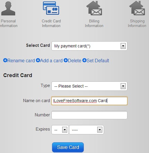 Switch between personal, credit card, billing and shipping information at the top. With the information filled out and saved, you can open up one of 16 supported websites, and when you shop there, or need to sign in, you can use OneID.