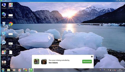 Last step requires you to download and install the client, after which you can start sharing the desktop. Remote screen will open up in a pop-up window. Use the panel at the bottom to control everything.