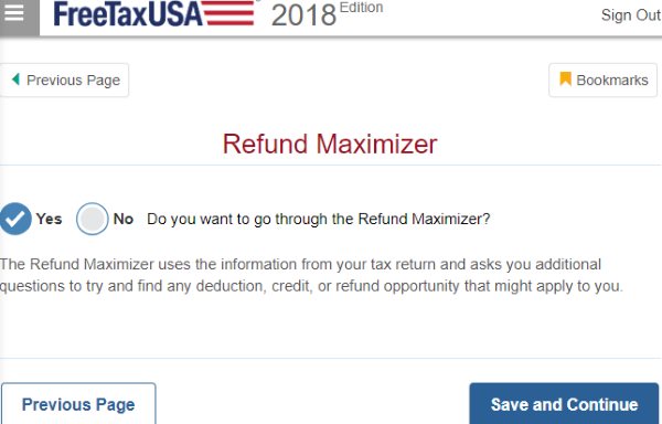 Then you will be taken through some miscellaneous forms and topics. Go through them to see if any of them is applicable to you. Then you will be shown a refund maximizer, you will be asked additional questions if you choose this option to maximize your refund. After you go through everything you will be shown a federal tax summary.
