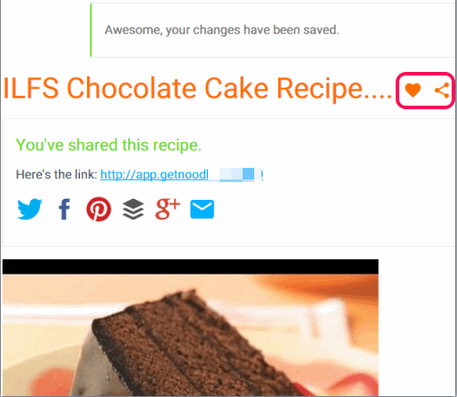 With your recipe title, you will find a heart icon to mark the recipe as favorite. Just next to the heart icon, sharing option is available. Clicking on that icon will make your recipe public immediately.
